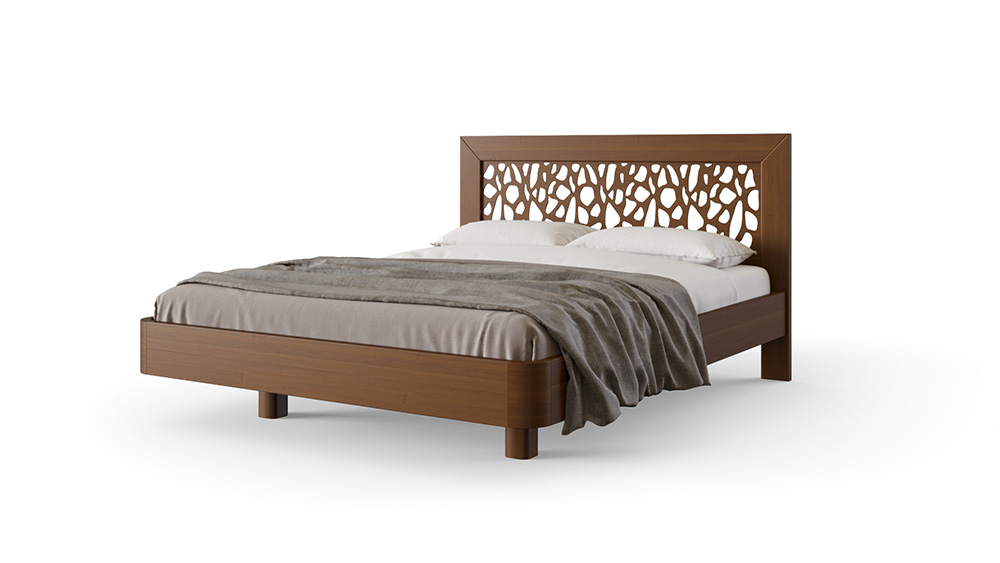 Кровать «Веро» с высоким, воздушным и стильным резным изголовьем производится из 100 % натурального массива бука или ясеня, оснащается в стандартной комплектации металлическим основанием Dream, и отличается скругленными углами геометрии изножья кровати, что сводит к минимуму риск случайных травм об углы низко расположенной мебели.