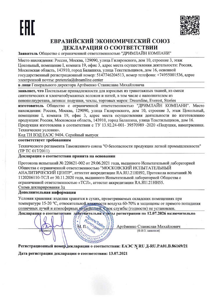* Обращаем ваше внимание - изображение товара "Подушка Dreamline Basic Middle" на странице его описания является иллюстрацией. Цвет изделия может незначительно отличаться от представленного на иллюстрации в зависимости от освещения и цветопередачи монитора. Сборка матрасной продукции в части слоев наполнителя обеспечивается строго оговоренными материалами. Так же возможна многослойность однородного материала. Полные параметры изделия, цвет, технические характеристики, состав, комплектацию и прочие технические параметры - уточняйте пожалуйста у менеджера при оформлении заказа.
